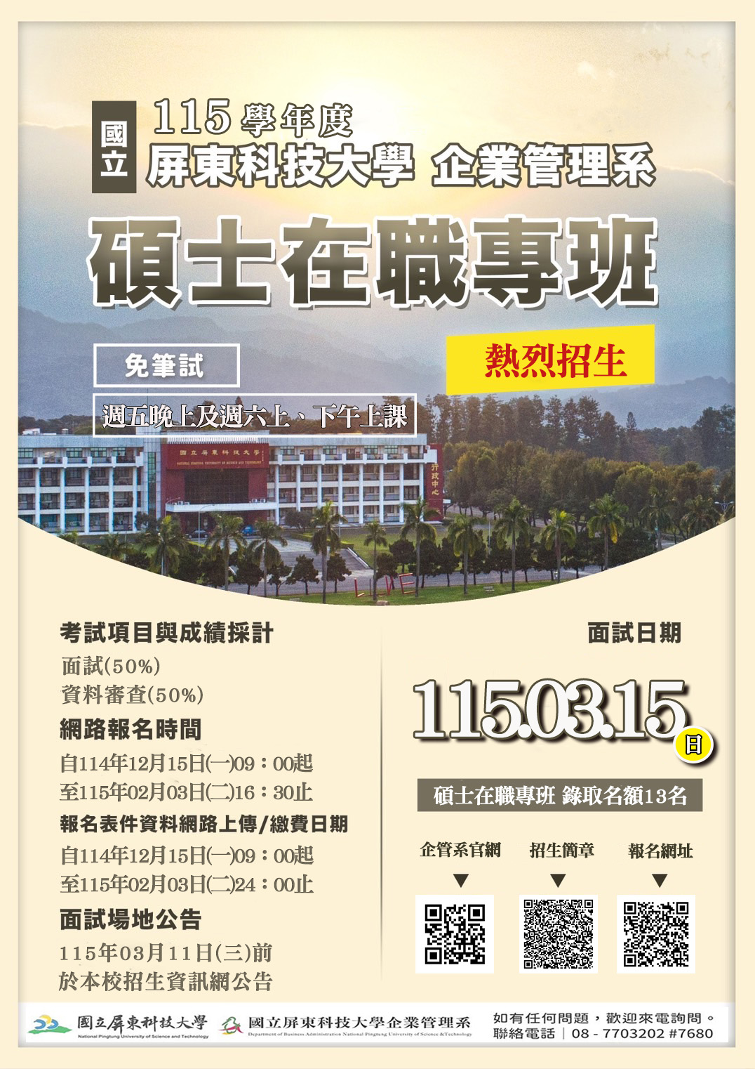 以創新、資訊、國際觀三大教育目標與連貫的課程規劃,在完善之專業訓練下,讓學生無論在企業界的人力資源、行銷、財務、生產、資訊等領域,皆有著優異、出眾的表現,以符合產業需求之全方位現代企業經營管理人才。