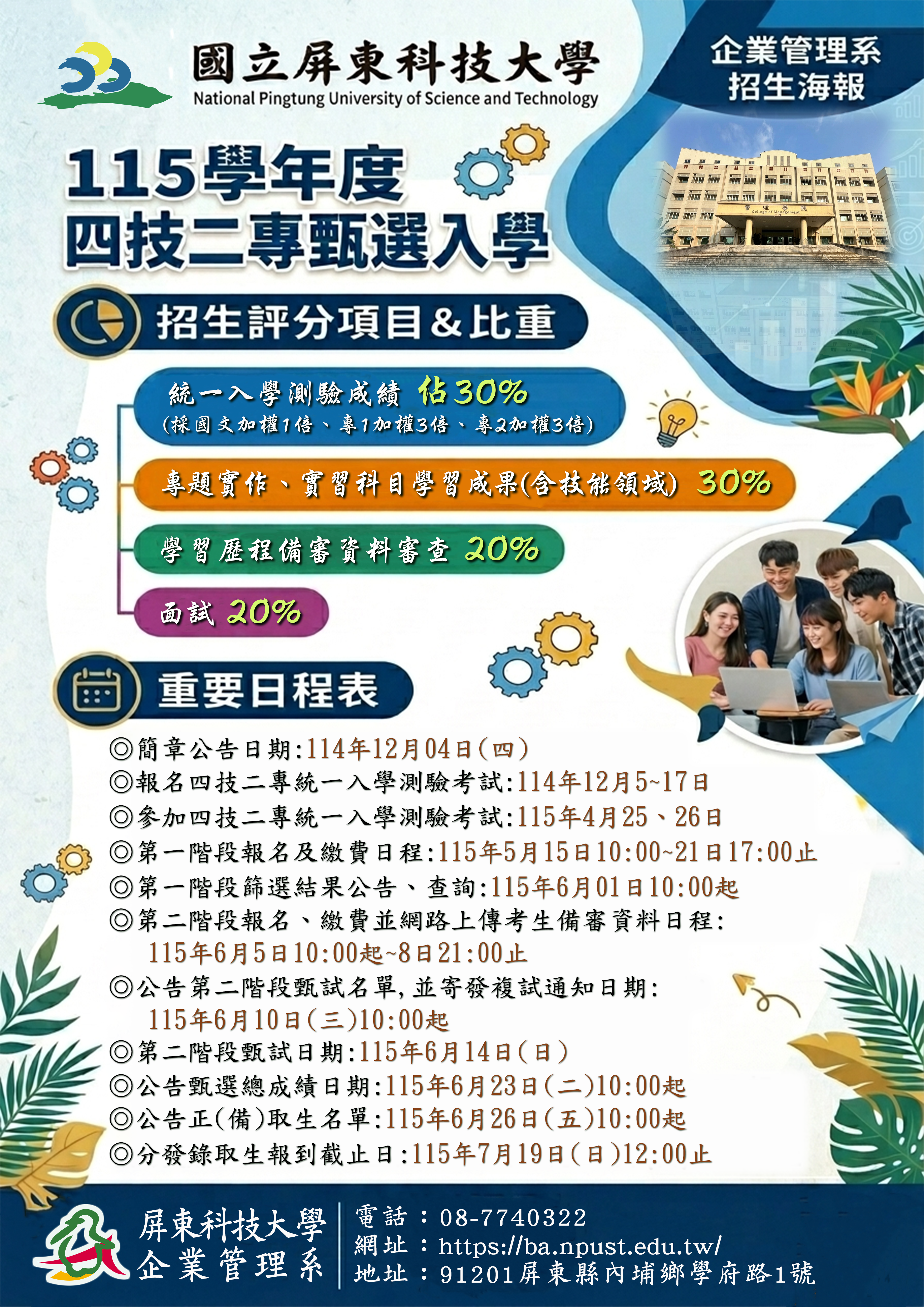 以創新、資訊、國際觀三大教育目標與連貫的課程規劃,在完善之專業訓練下,讓學生無論在企業界的人力資源、行銷、財務、生產、資訊等領域,皆有著優異、出眾的表現,以符合產業需求之全方位現代企業經營管理人才。